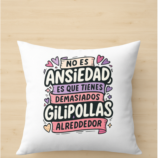 Dale a tu hogar un toque de humor ácido y personalidad con este Cojín Personalizado de 40x40 cm con Relleno incluido. La frase “No es ansiedad lo que tienes, es que tienes demasiados gilipollas alrededor” convierte este cojín en una pieza divertida, irreverente y perfecta para quienes aman decir las cosas tal cual son.