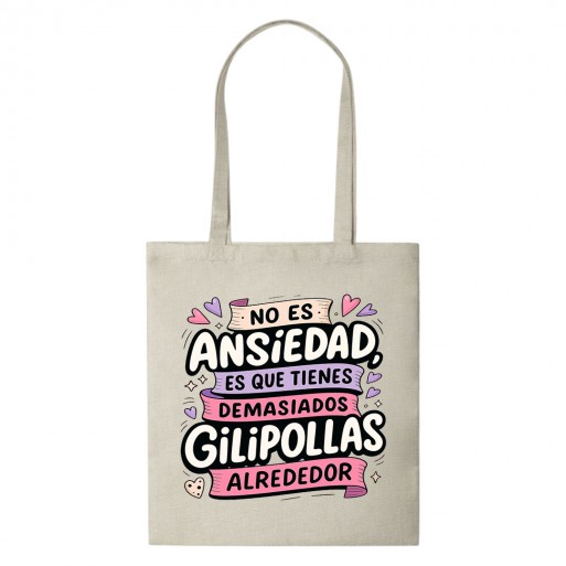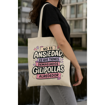 Dilo alto, claro y con estilo. Esta Tote Bag Multiusos Personalizada es el complemento ideal para quienes afrontan la vida con humor, sinceridad y un toque de sarcasmo. Con el mensaje “No es ansiedad lo que tienes, es que tienes demasiados gilipollas alrededor”, esta bolsa se convierte en un accesorio funcional… y en toda una declaración de intenciones.
